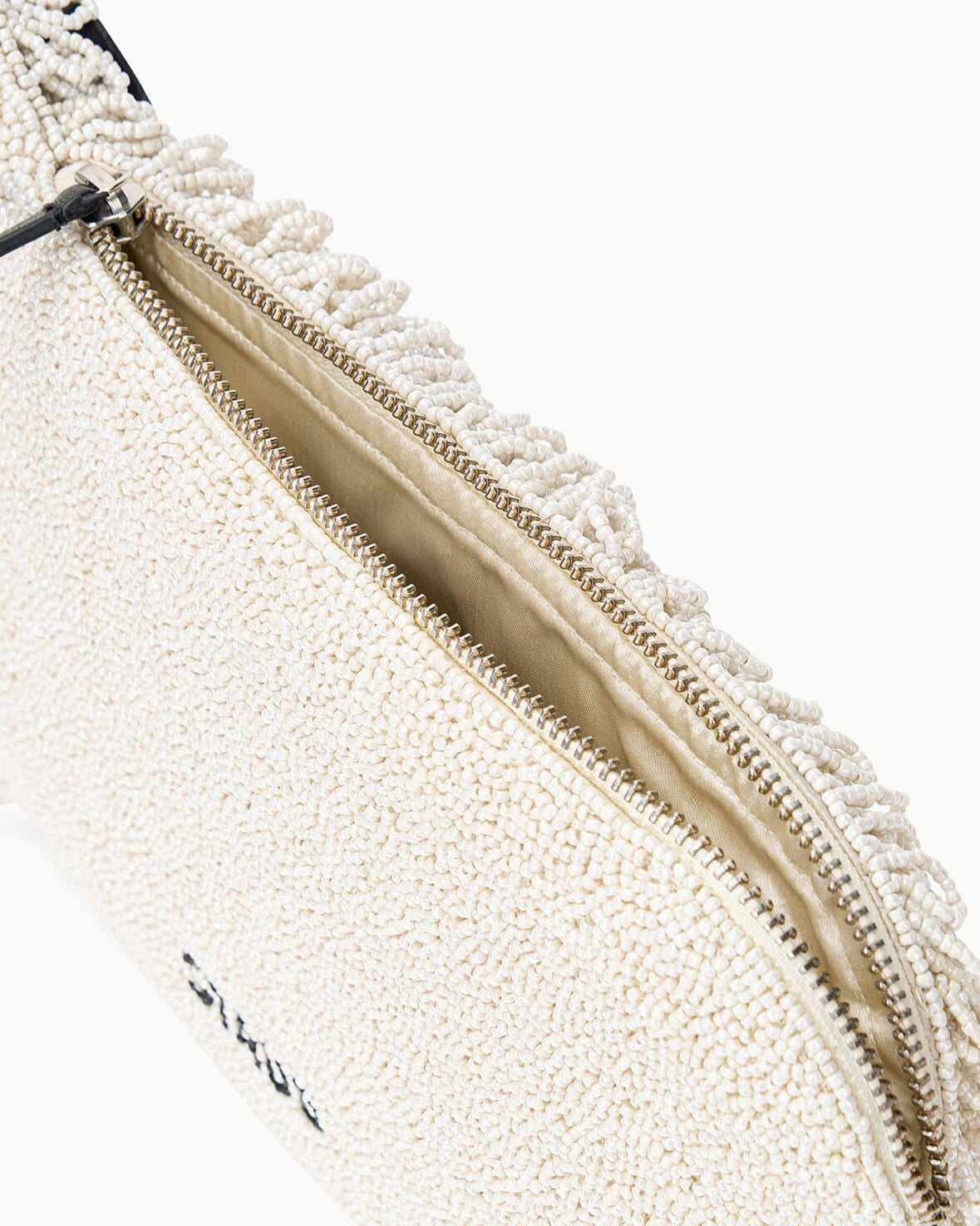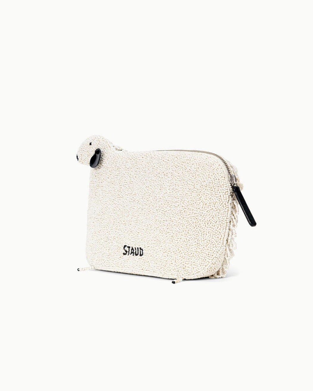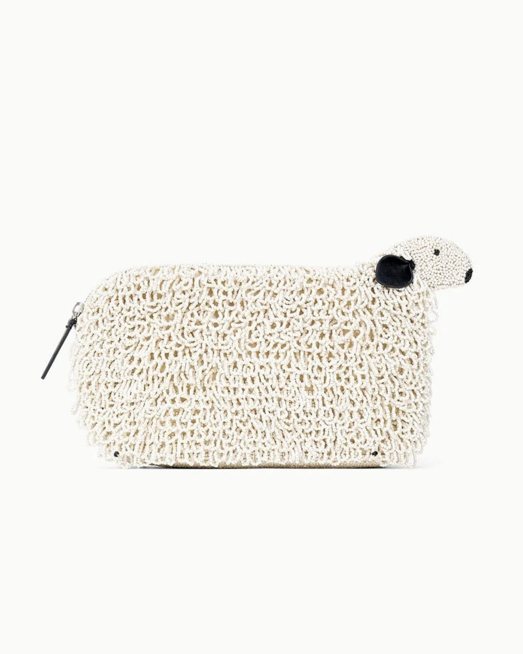 The Dolly Beaded Clutch | Ivory is a new novelty handbag, a nod to our seasonal theme in a playful sheep. This style features a zipper pull and leather detailing.
