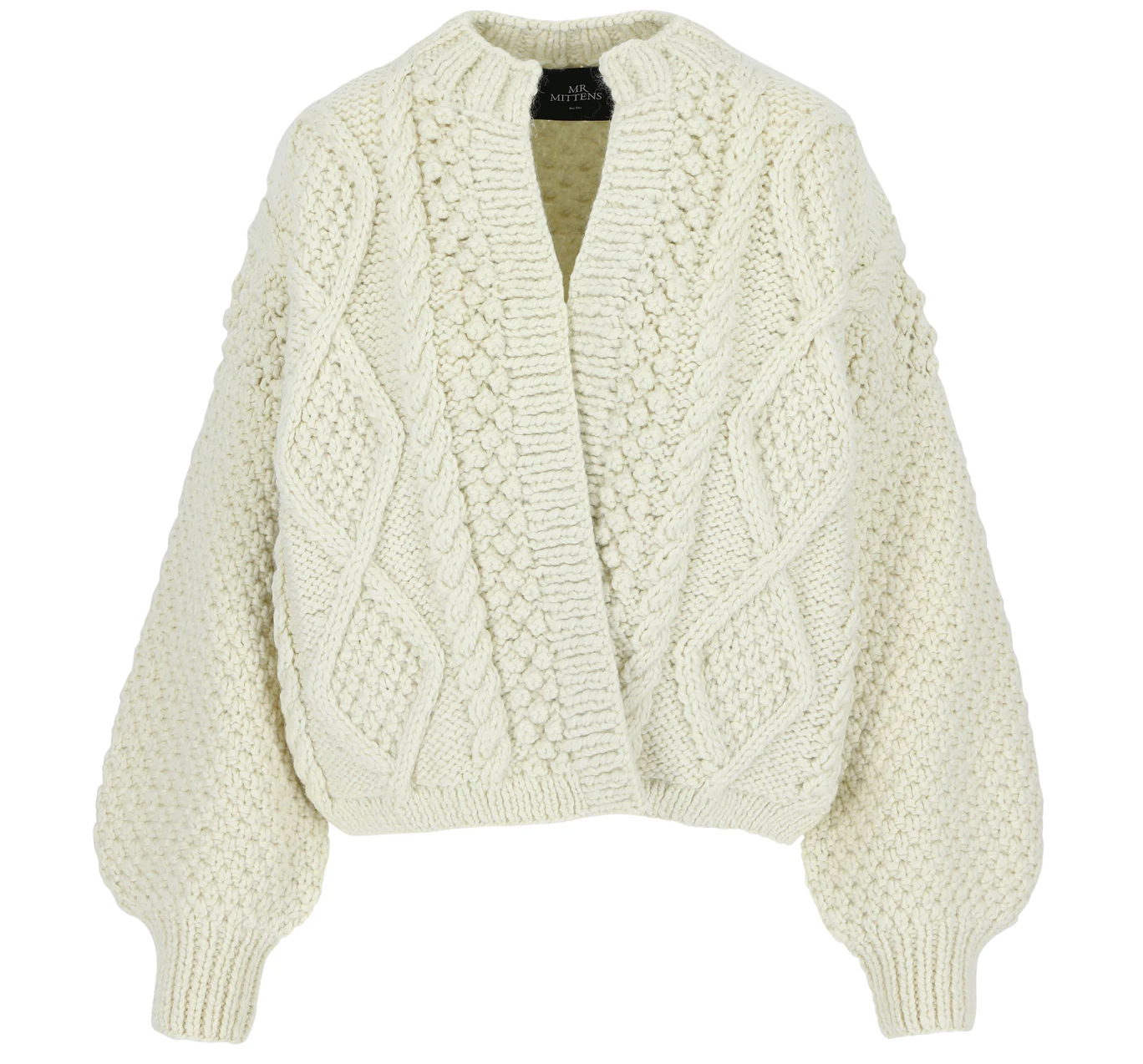 This cardigan is designed for those who seek a distinctive touch in their wardrobe. With its unique stitching pattern and round neck line, the Kimmie Cardigan adds a special flair to your ensemble. Crafted for ease and style, this cardigan doesn't feature closures, allowing you to effortlessly drape it over your outfit. Its above-the-hips length strikes a balance between a classic cardigan and a contemporary silhouette. Made from 100% wool.