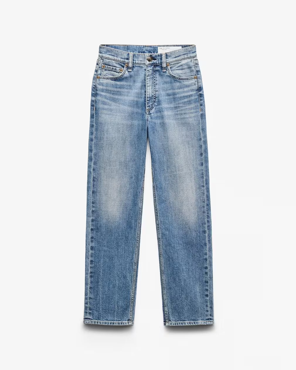 The Harlow. Impossibly cool straight-leg jeans that are mid-rise, fitted through the thighs, and cropped at the ankles. Crafted from our Vintage Stretch denim for a broken-in look & feel with a comfortable touch of stretch. In Amity, a medium indigo wash.