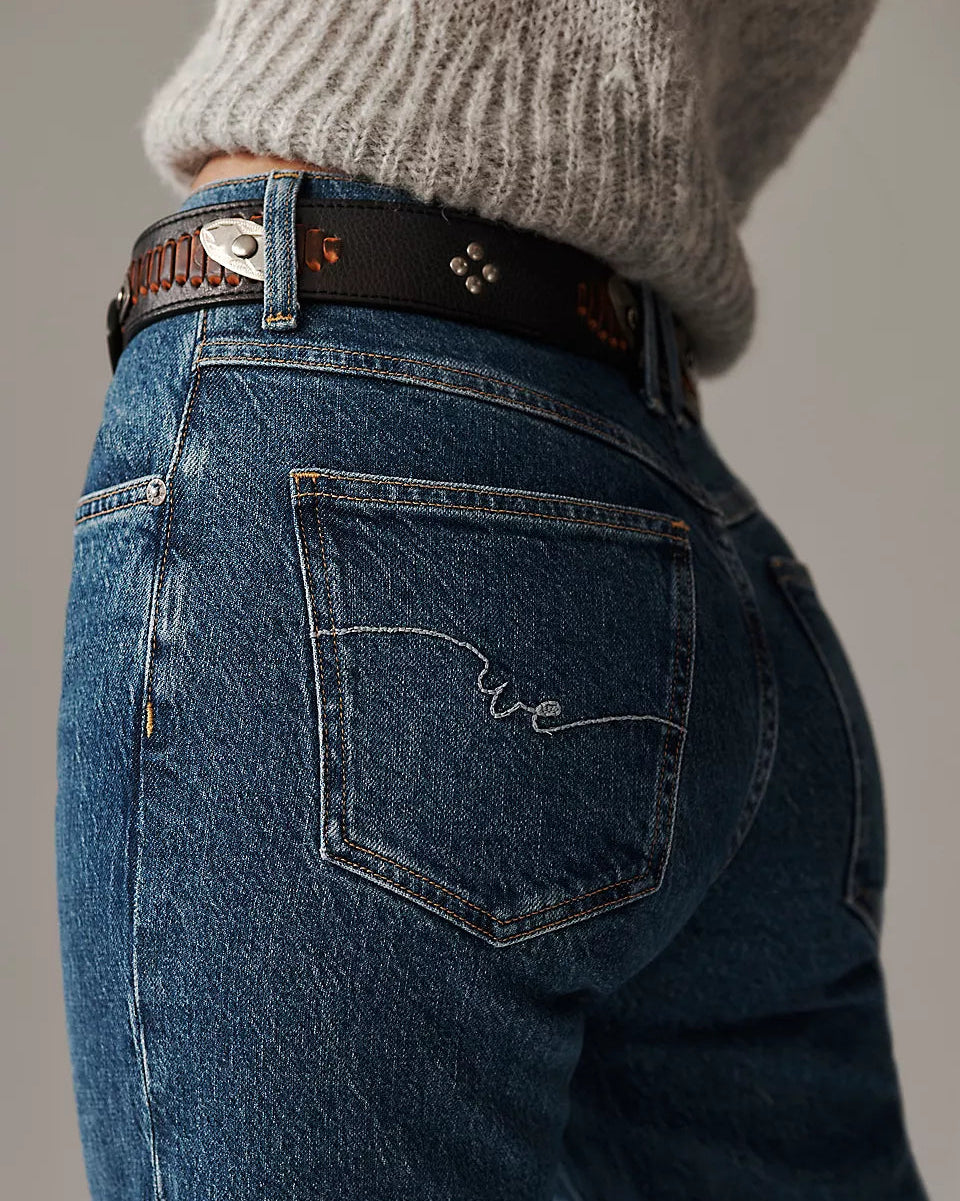 Fit: Mid-rise, true straight silhouette with semi-rigid denim