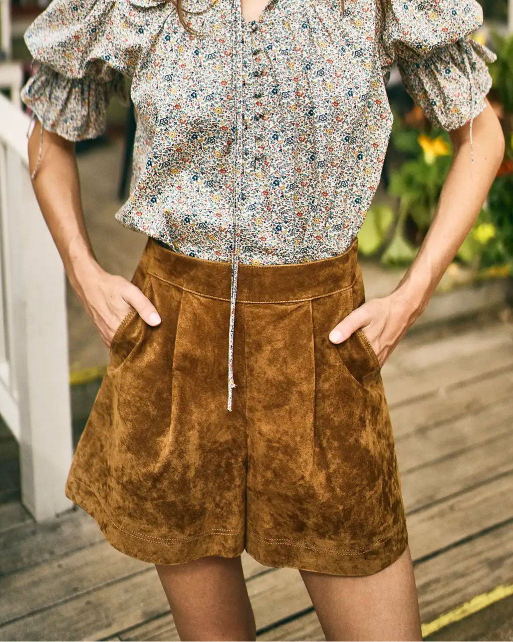 Hunter Bell's best-selling Ashton Shorts return for fall in rich Nutmeg suede, offering a luxurious twist on a fan-favorite silhouette. Designed with a tailored banded waist, soft front pleats, and a flattering A-line shape, they strike the perfect balance between structure and softness. Whether paired with a cozy knit or a crisp blouse, Ashton brings elevated ease to every outfit.