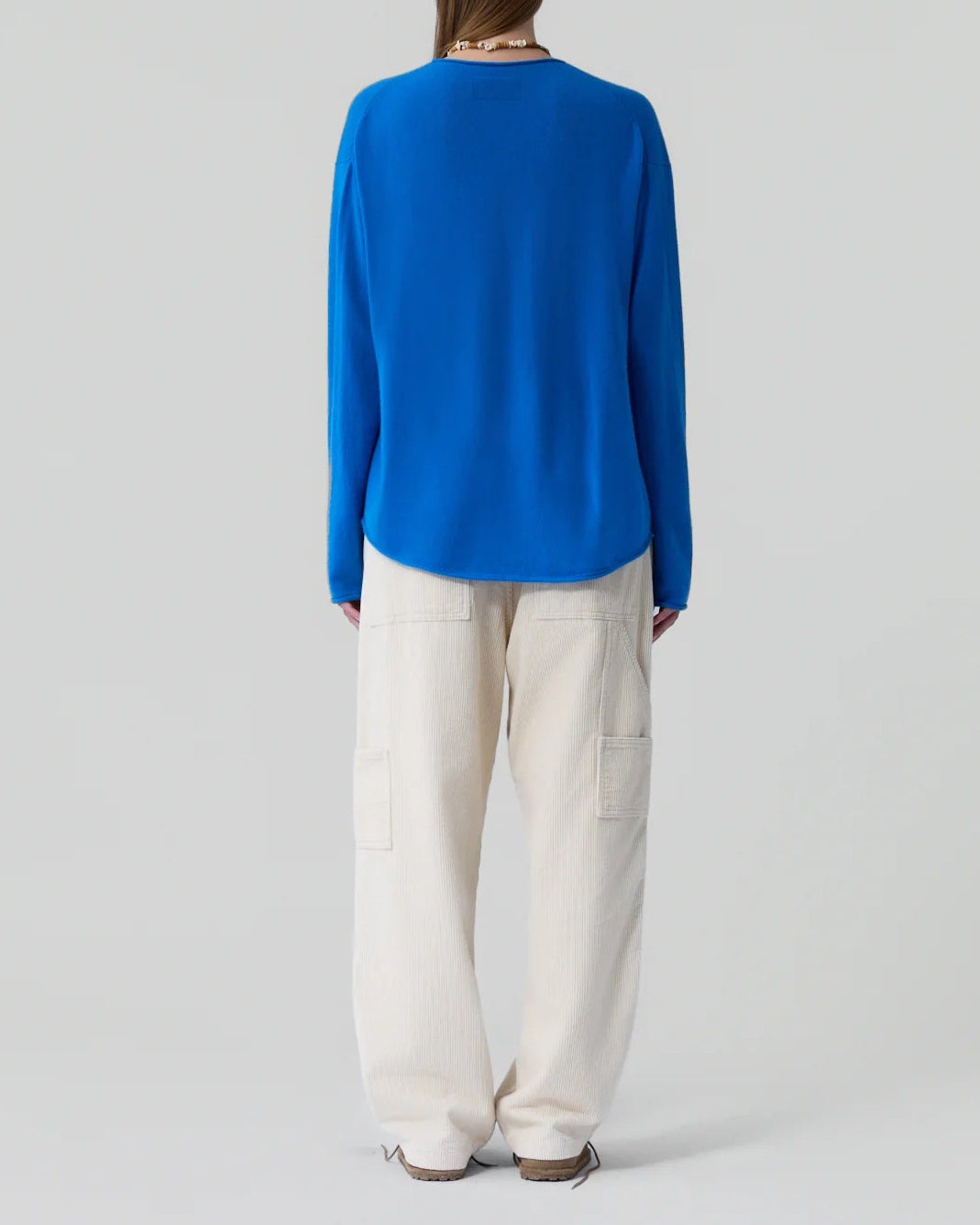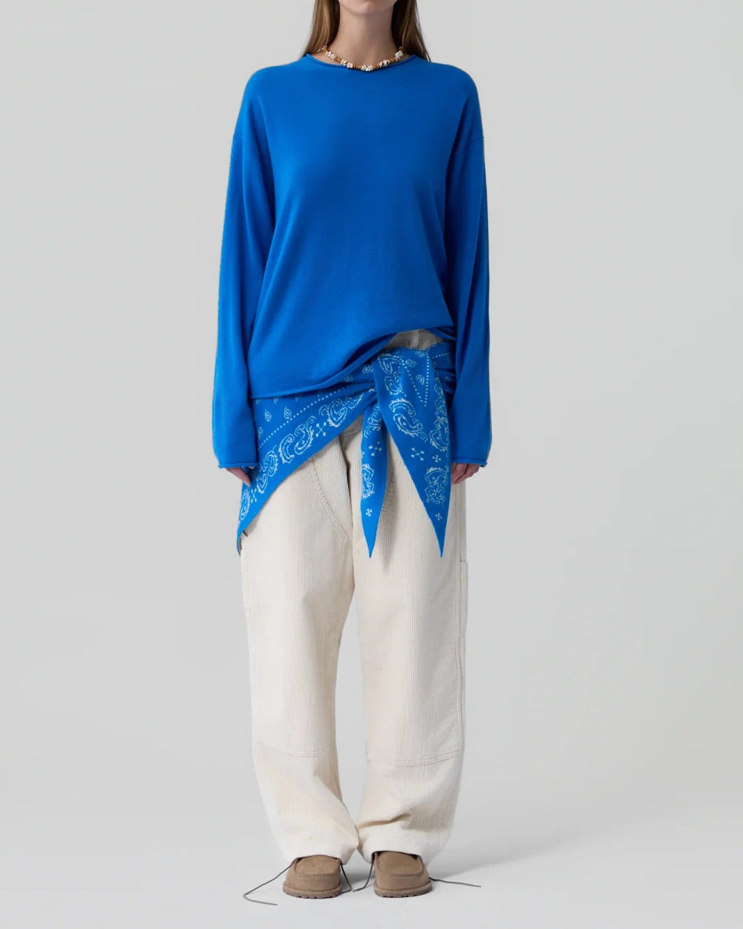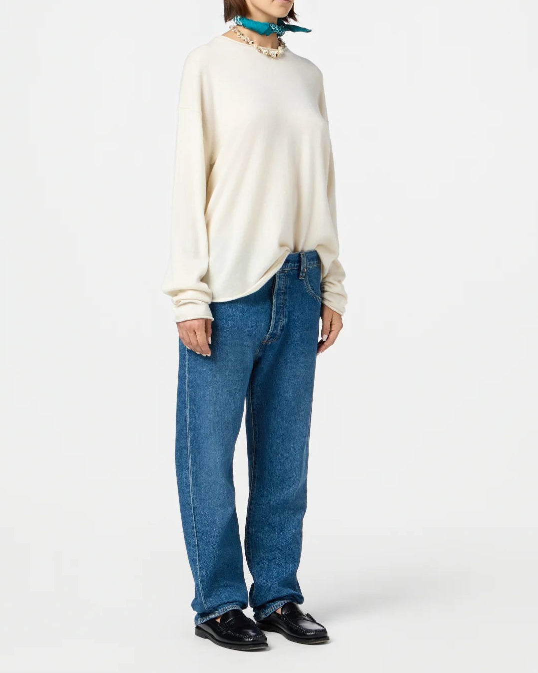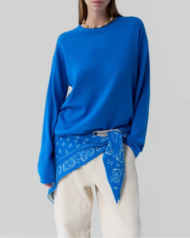 The Guest in Residence signature Oversized Crew, made of 100% cashmere is designed for both men and women. This unisex sweater features a classic crew neck and is crafted from the finest cashmere fibers, ensuring a soft and cozy feel against your skin. The oversized fit allows for a comfortable and relaxed look.