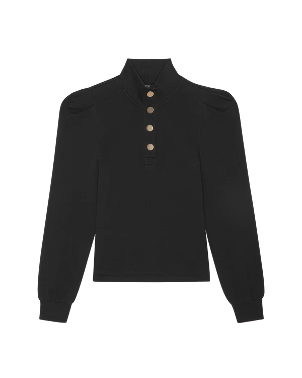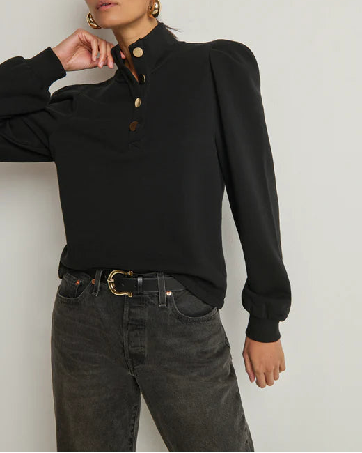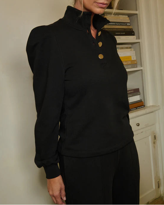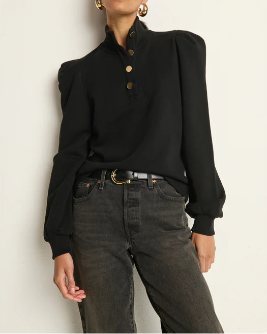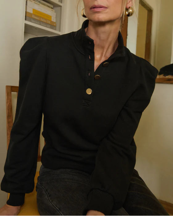 The Jessie Sweatshirt redefines casual with thoughtful tailoring—crafted from 100% cotton French terry in our classic signature fit. Featuring a button-up placket, pleated details, ribbed cuffs, and touches of gold hardware for a flawless finish.