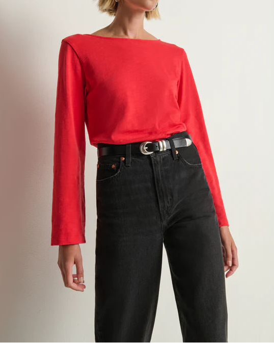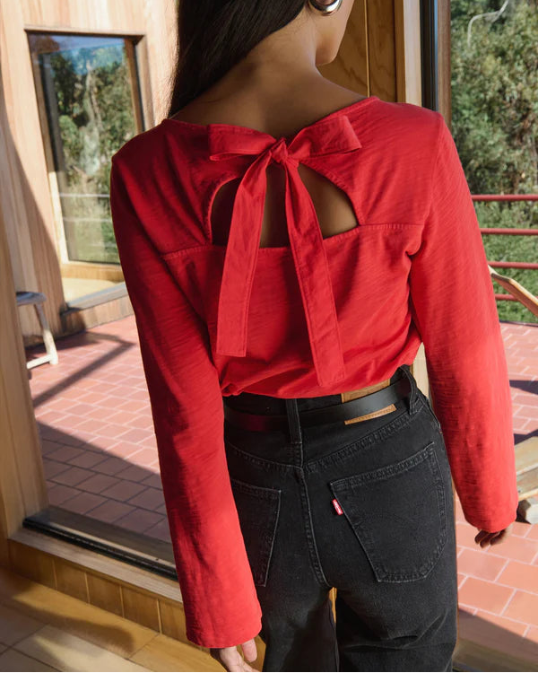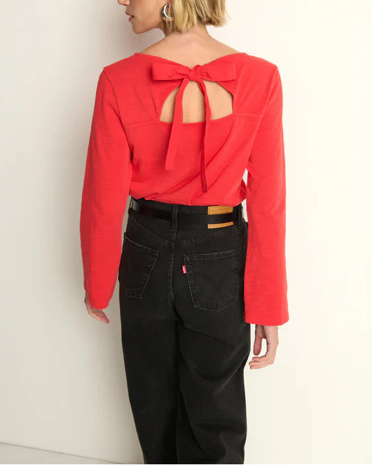 Heads will turn. The Tavin Tie Back Top combines classic comfort with refined touches—cut from 100% cotton jersey in our classic signature fit. A boat neck, long sleeves, and a graceful tie-back bow in a contrasting weave add subtle sophistication.