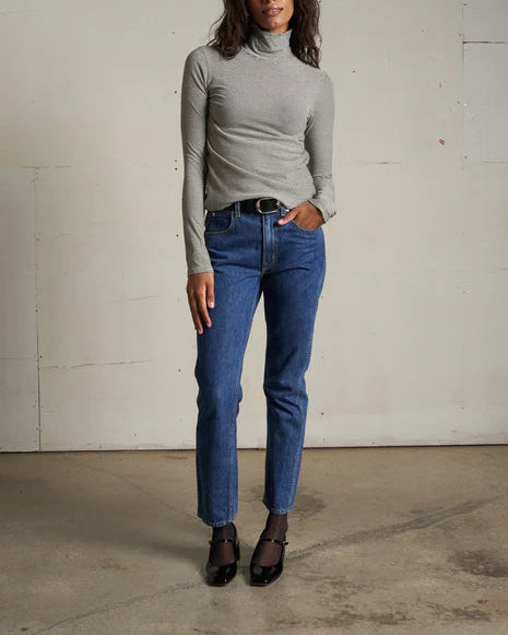 the cindy top is part of our recycled cotton collection. softly structured with a close fit and lightweight feel, it’s designed with a classic turtleneck silhouette that hugs just right. this is the kind of piece that makes layering feel intentional, but it’s just as good worn on its own.