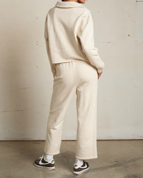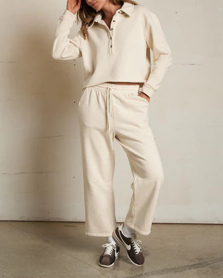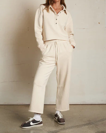 why we love it: we love the vinny because it’s the perfect companion to the fallon bottom, creating a set that feels both comfortable and put-together. whether it’s school pick-ups, airport travel, or a busy day of errands, this top makes everyday dressing simple without sacrificing style. the raw hem adds just the right amount of edge to a classic fleece design.