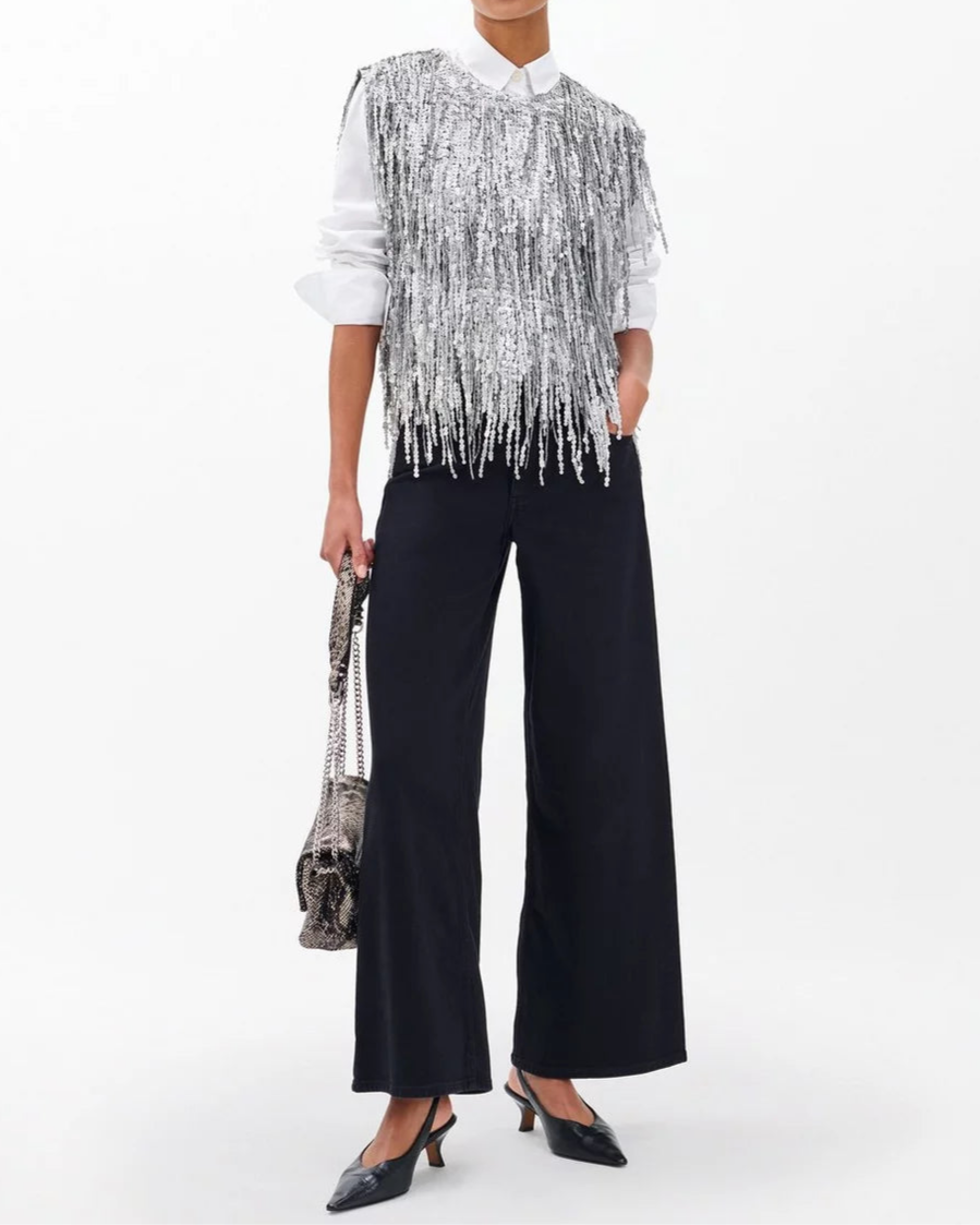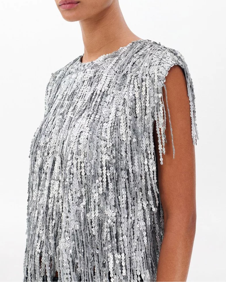 • Allover sequined fringe