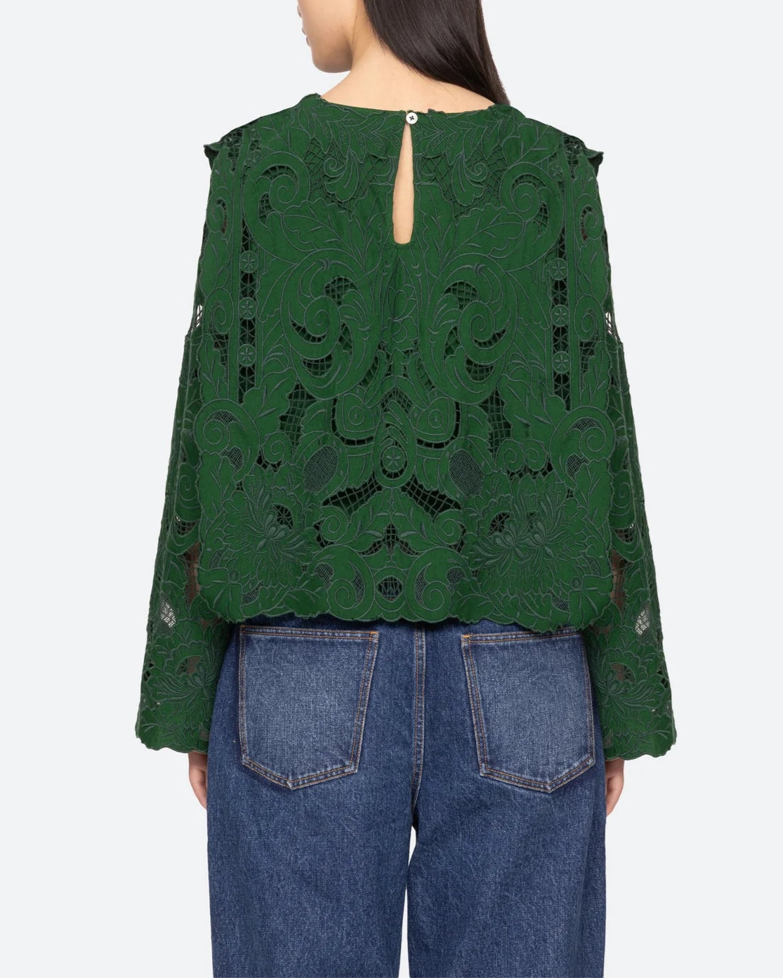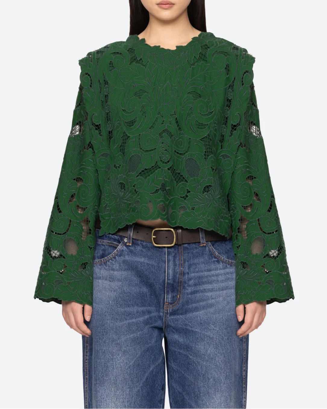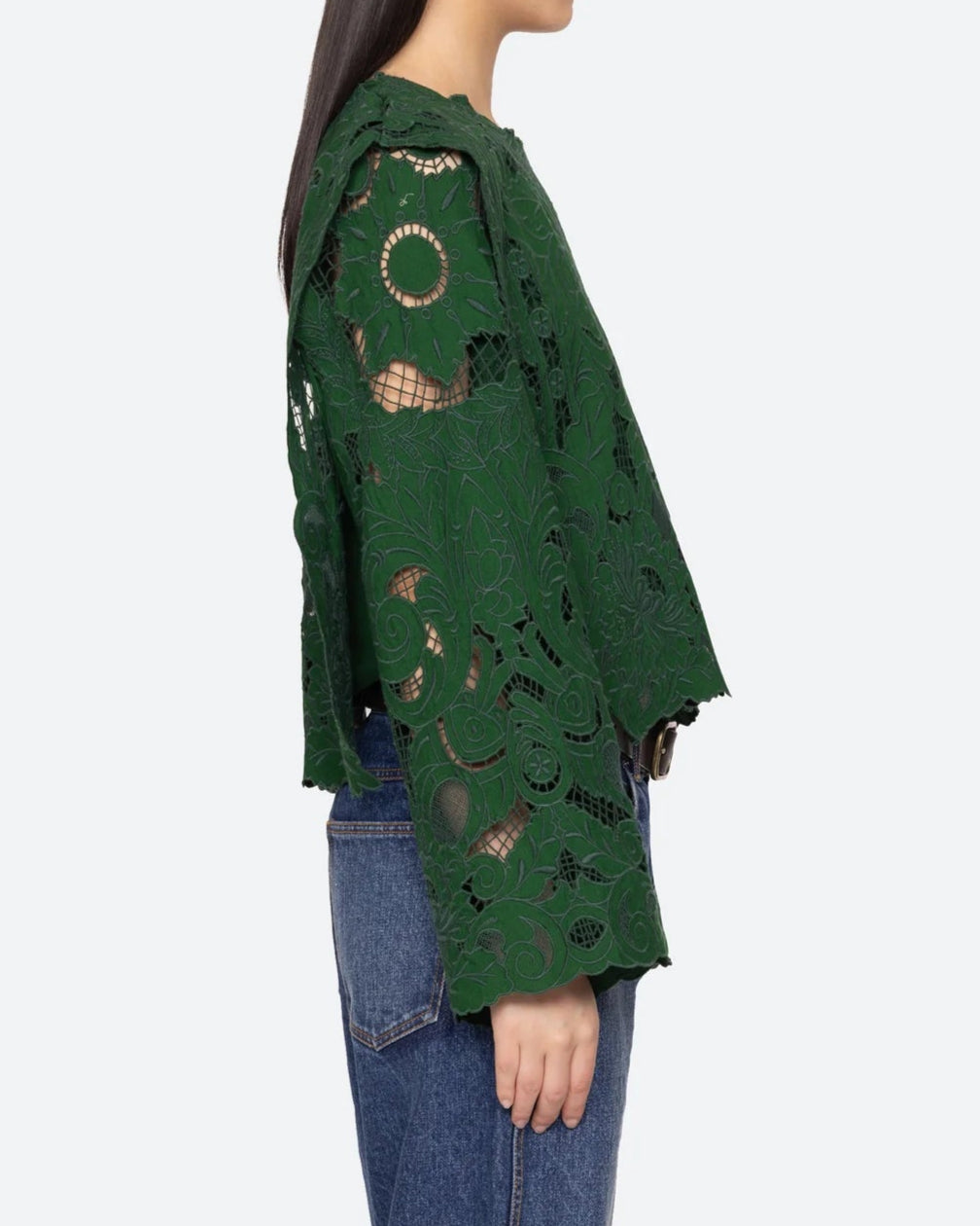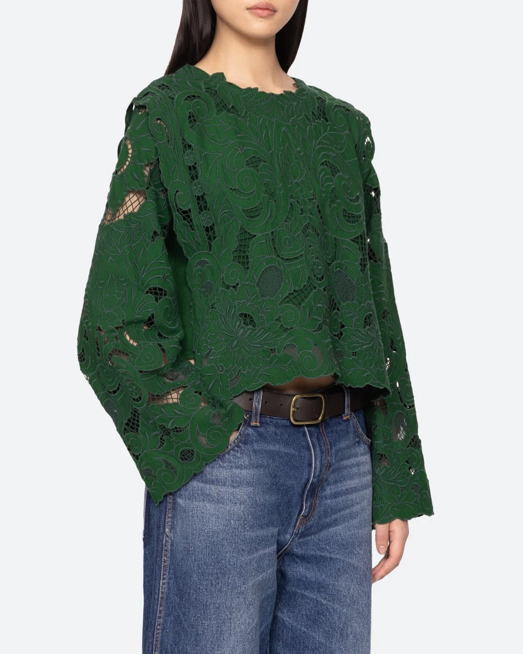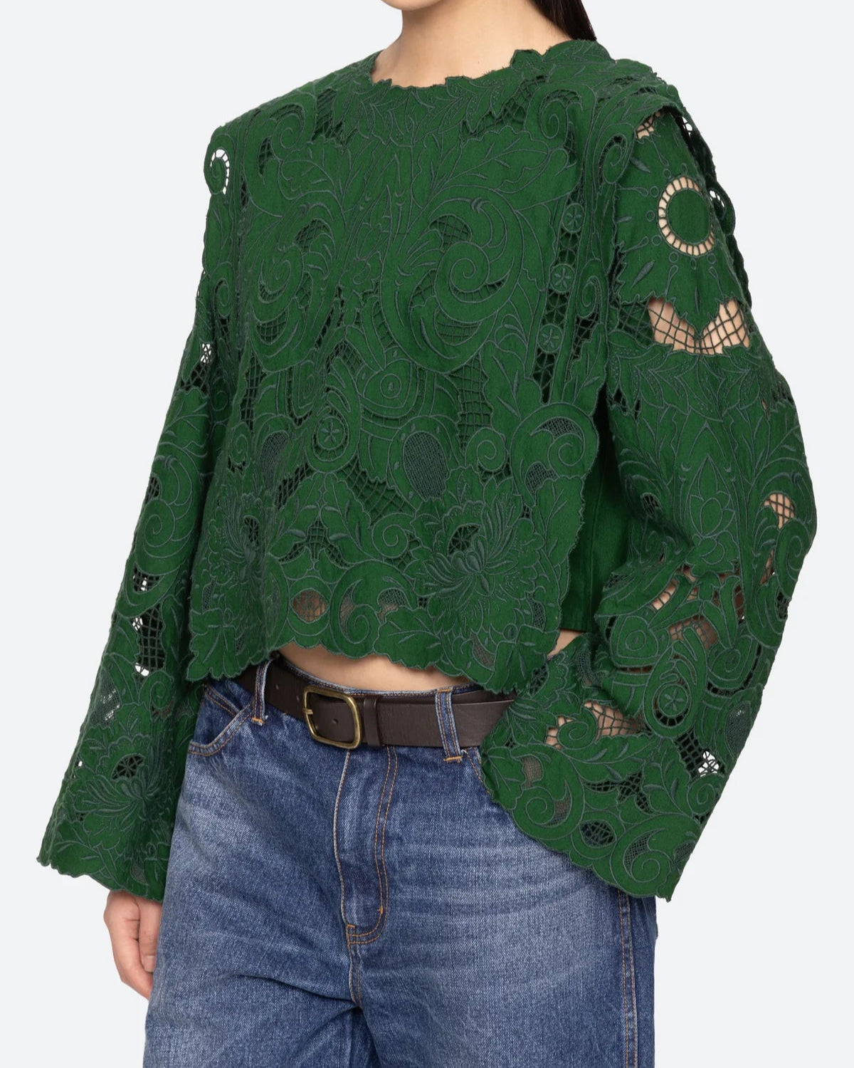 The Ceci embroidered long sleeve top features delicate floral embroidery, intricate cut-out detailing, and cropped silhouette. Gracefully combining timeless femininity with a touch of modern elegance.