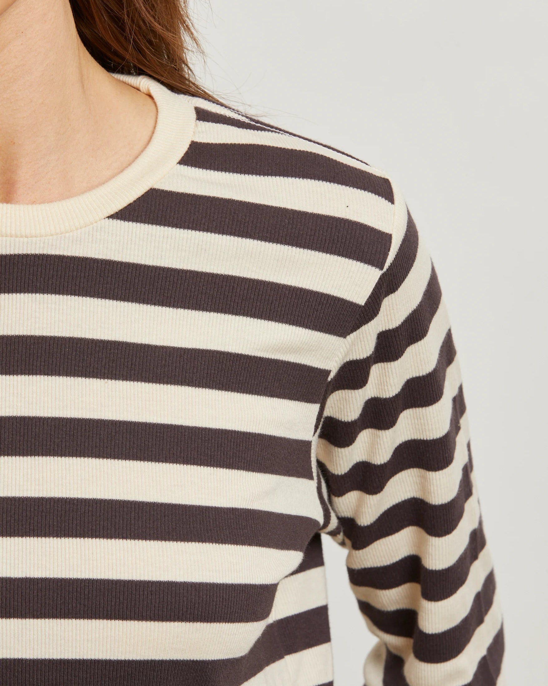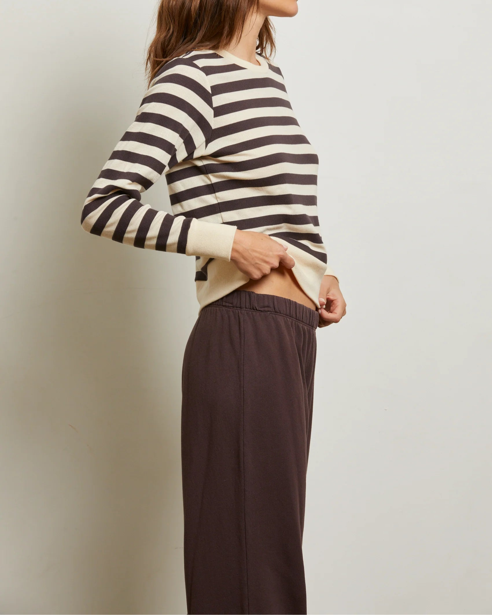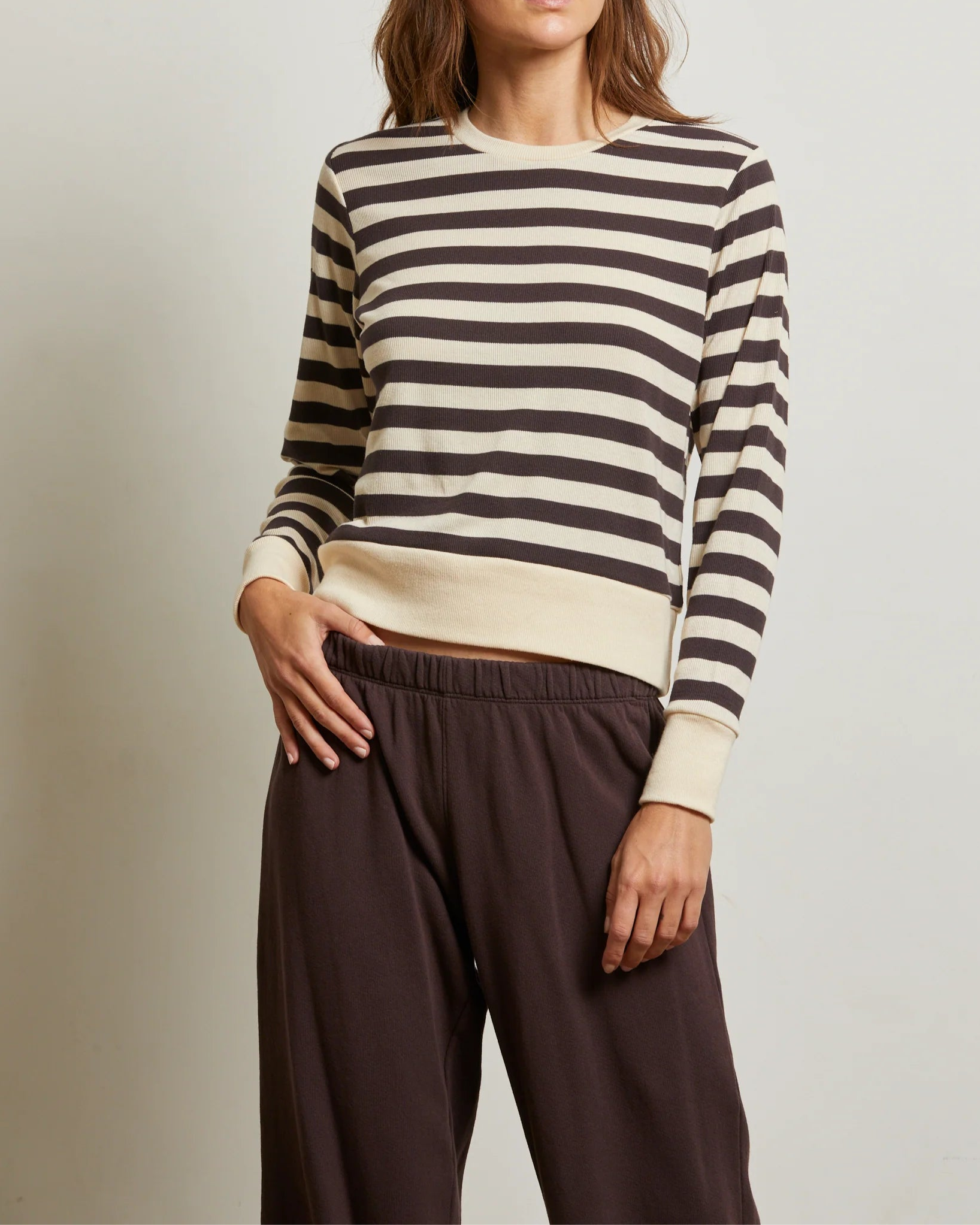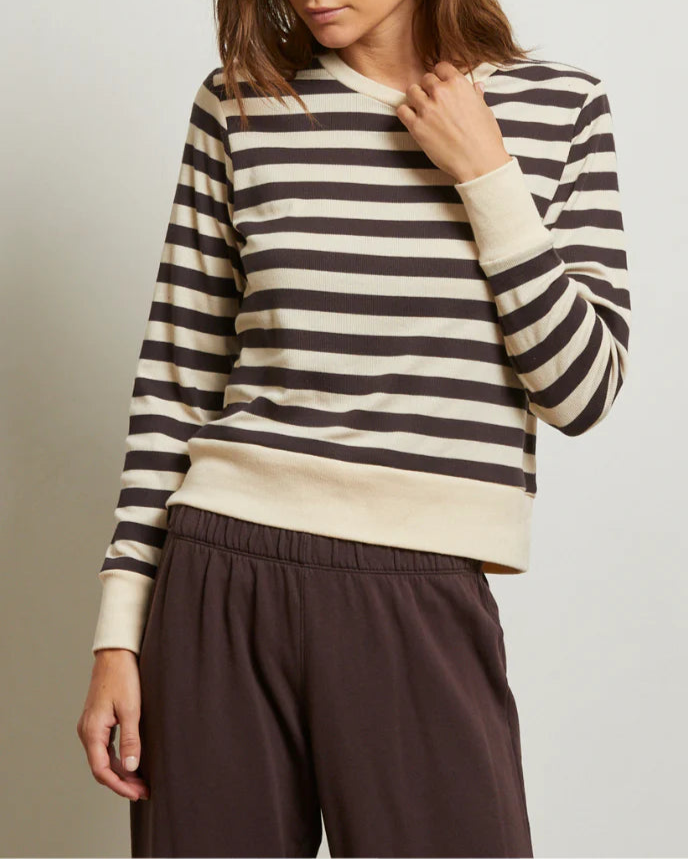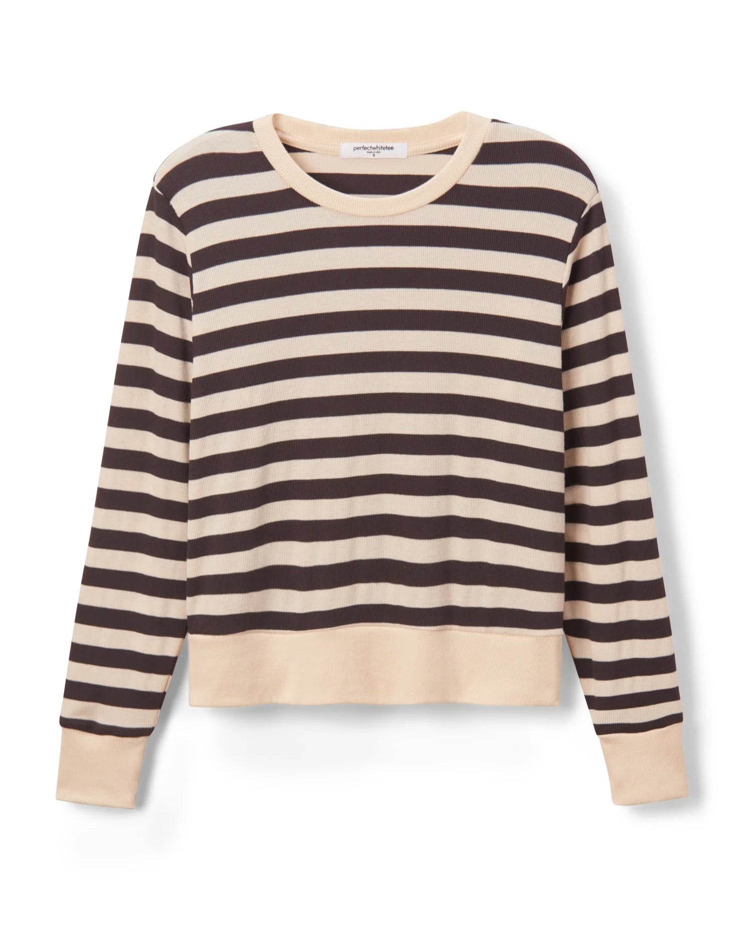 stef stripe luxe rib pullover sweatshirt | mocha stripe