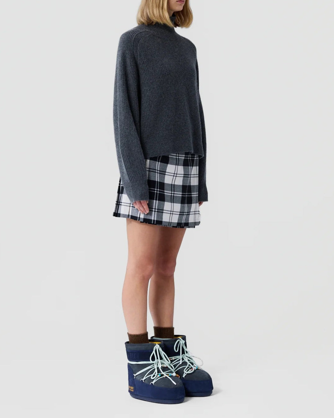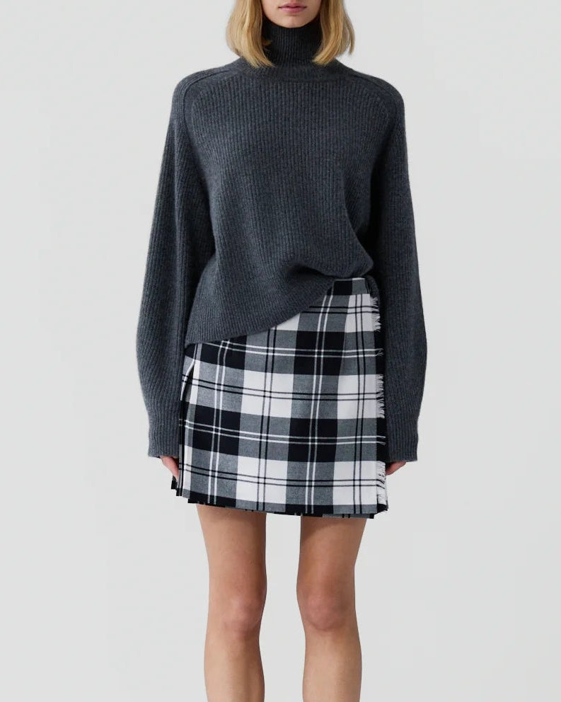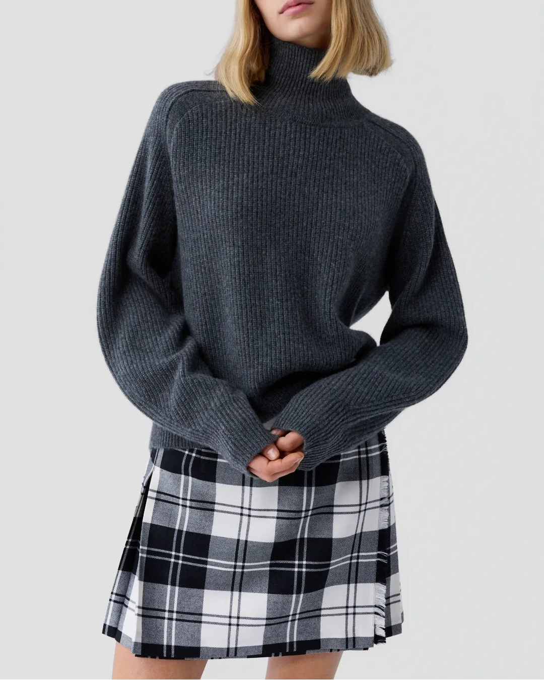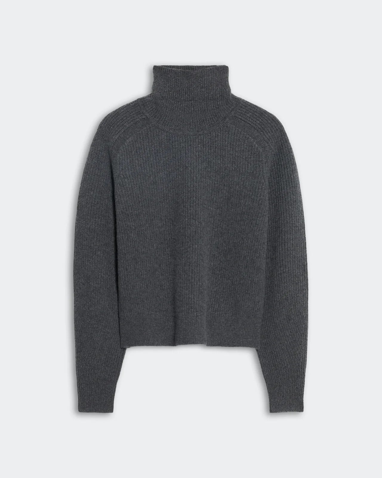The Cropped Rib Turtleneck is a women’s 100% cashmere sweater with a modern cropped fit and ribbed texture. This cashmere turtleneck sweater is perfect for layering under jackets or pairing with high-waisted pants for colder days and cozy nights.