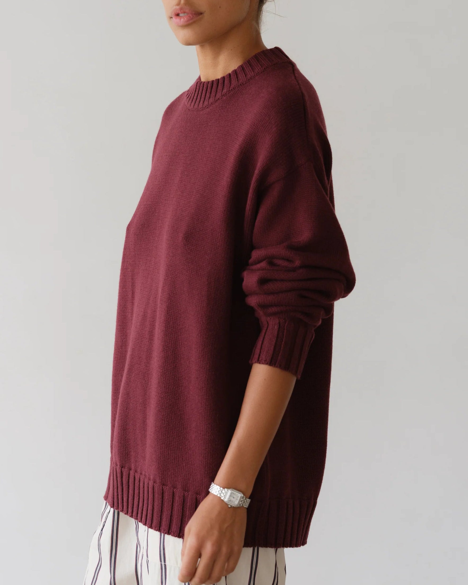 The Cotton Cashmere Crewneck Sweater | Oxblood