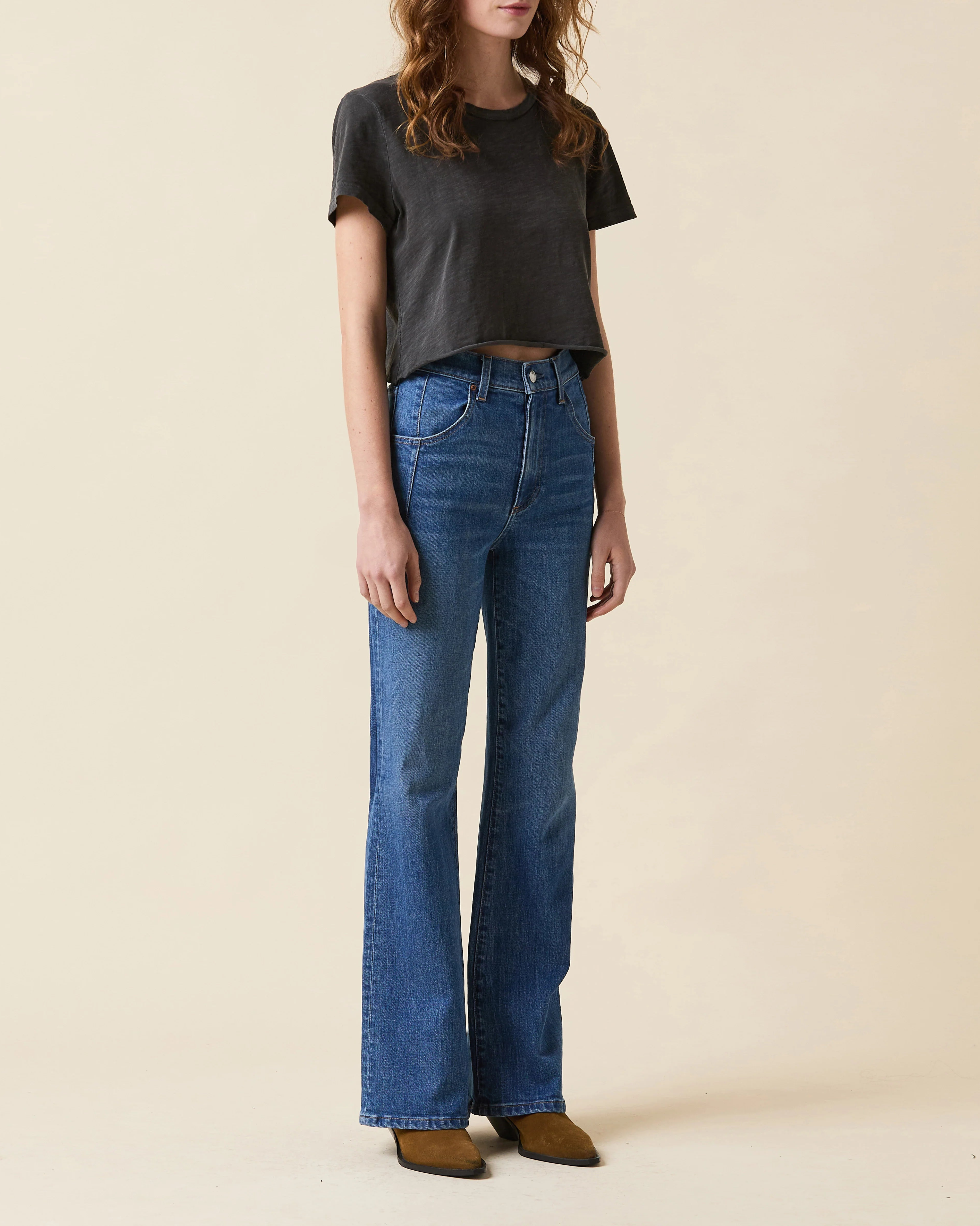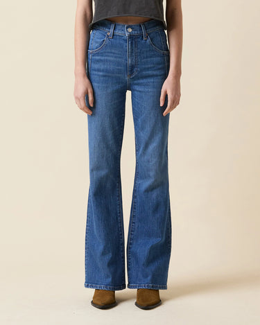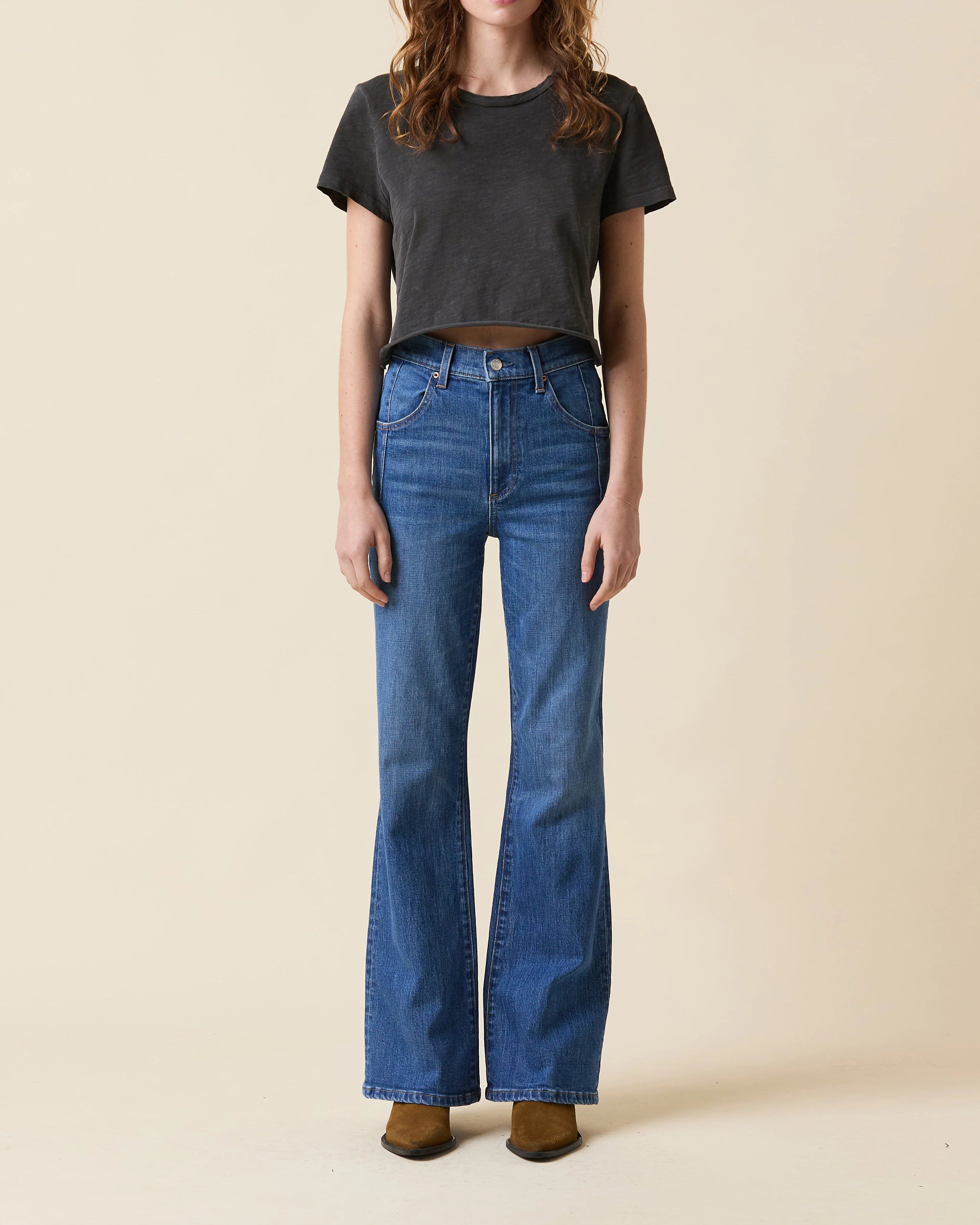 The Farrah Flare | Bohemian Blue is crafted from supersoft, lightweight denim, offering all-day comfort with a luxe feel. Designed to sit high on the waist, they feature a full-length, flared silhouette that elongates the leg.
