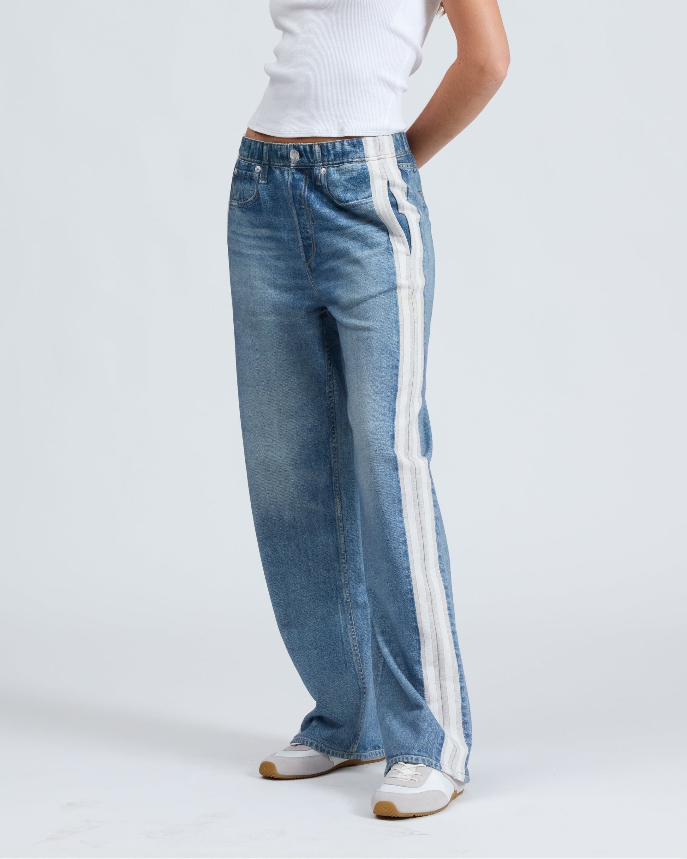 Miramar, our revolutionary printing technique, makes any material look like denim. These wide-leg pants are cut and sewn from cotton terry cloth that's ultra-soft on the inside and printed on the outside to look like your favorite jeans. Featuring a pull-on elastic waistband and side seam pockets, the mid-rise style further achieves its comfortable fit and feel with the other denim details digitally printed on the fabric.
