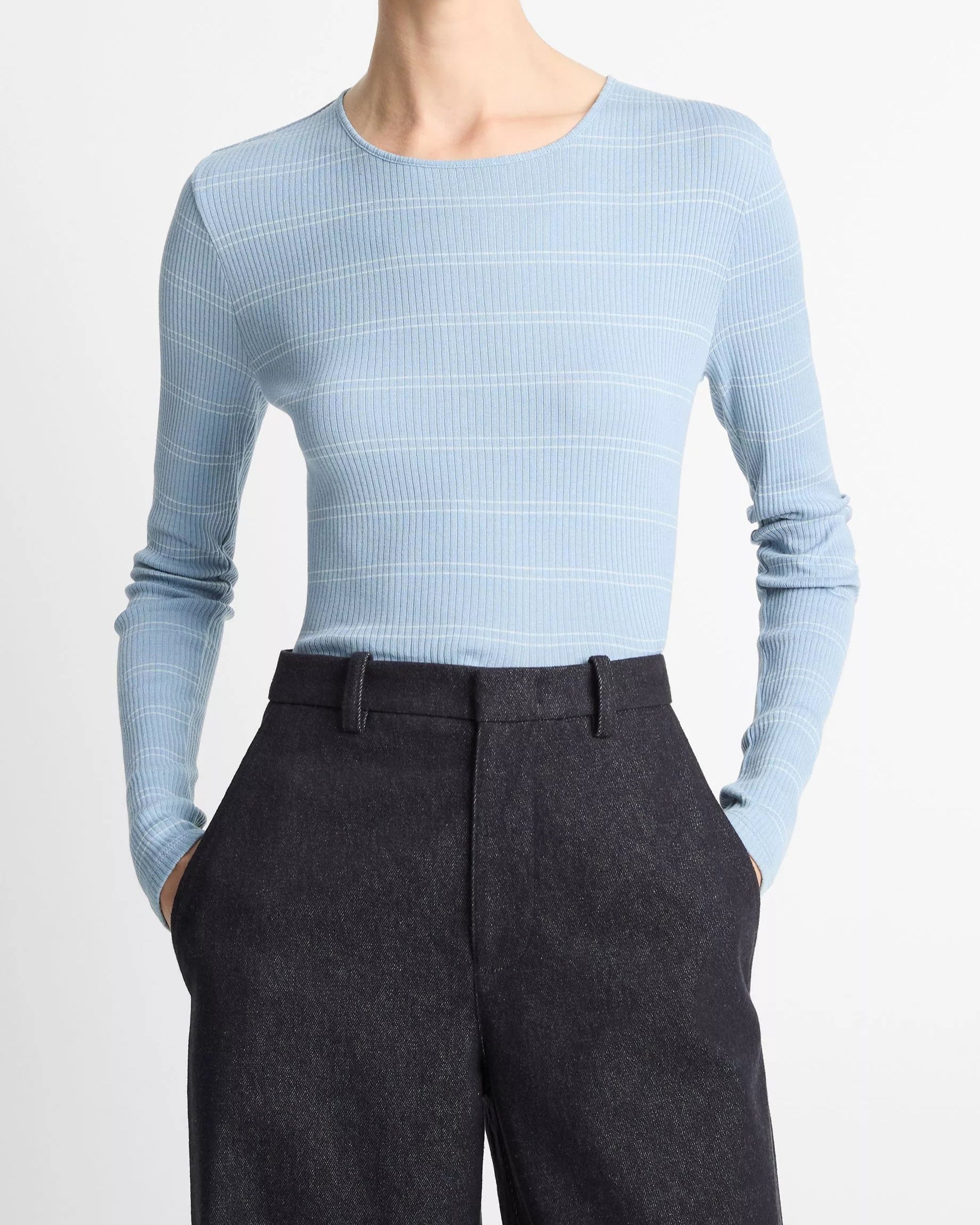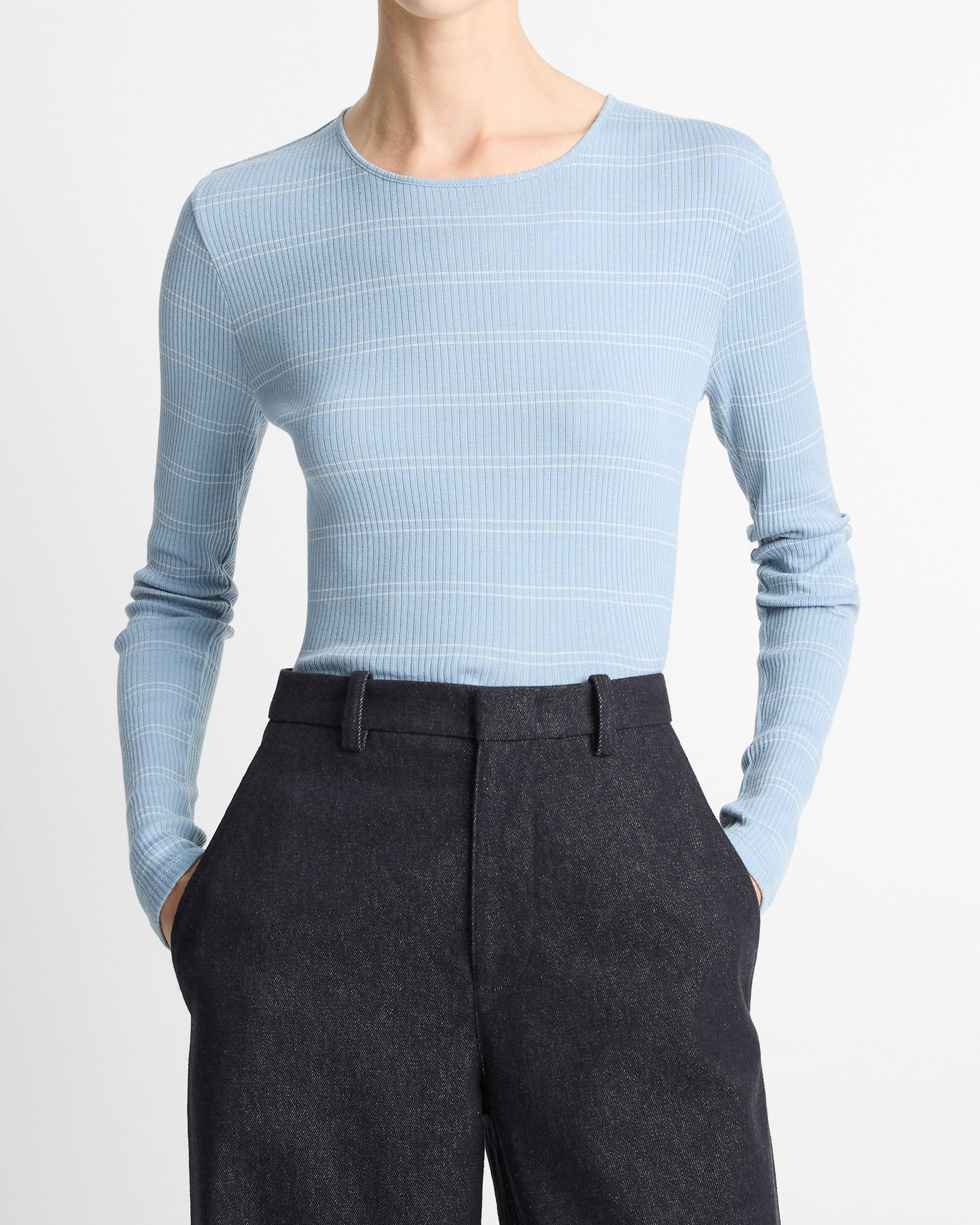 Striped Ribbed Pima Cotton Long-Sleeve T-Shirt | Amalfi Combo