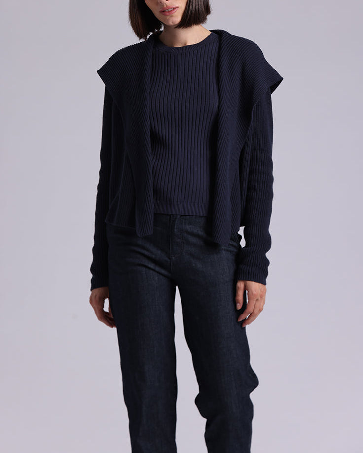 Cotton Shaker Hooded Flyaway Cardigan | Navy