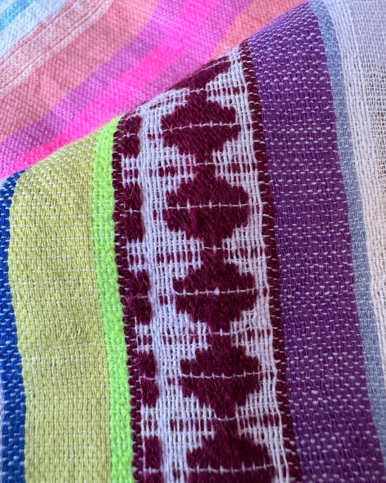 Vibrant and full of color, the Cirq collection features intricate stripes in sun-washed hues and a Tibeb-inspired pattern in rich dark plum.