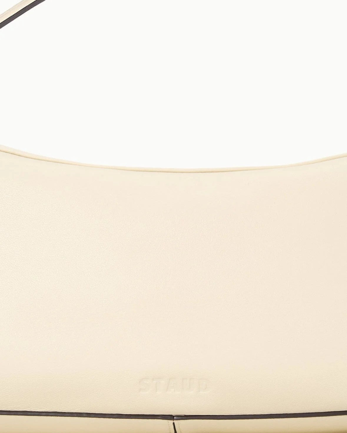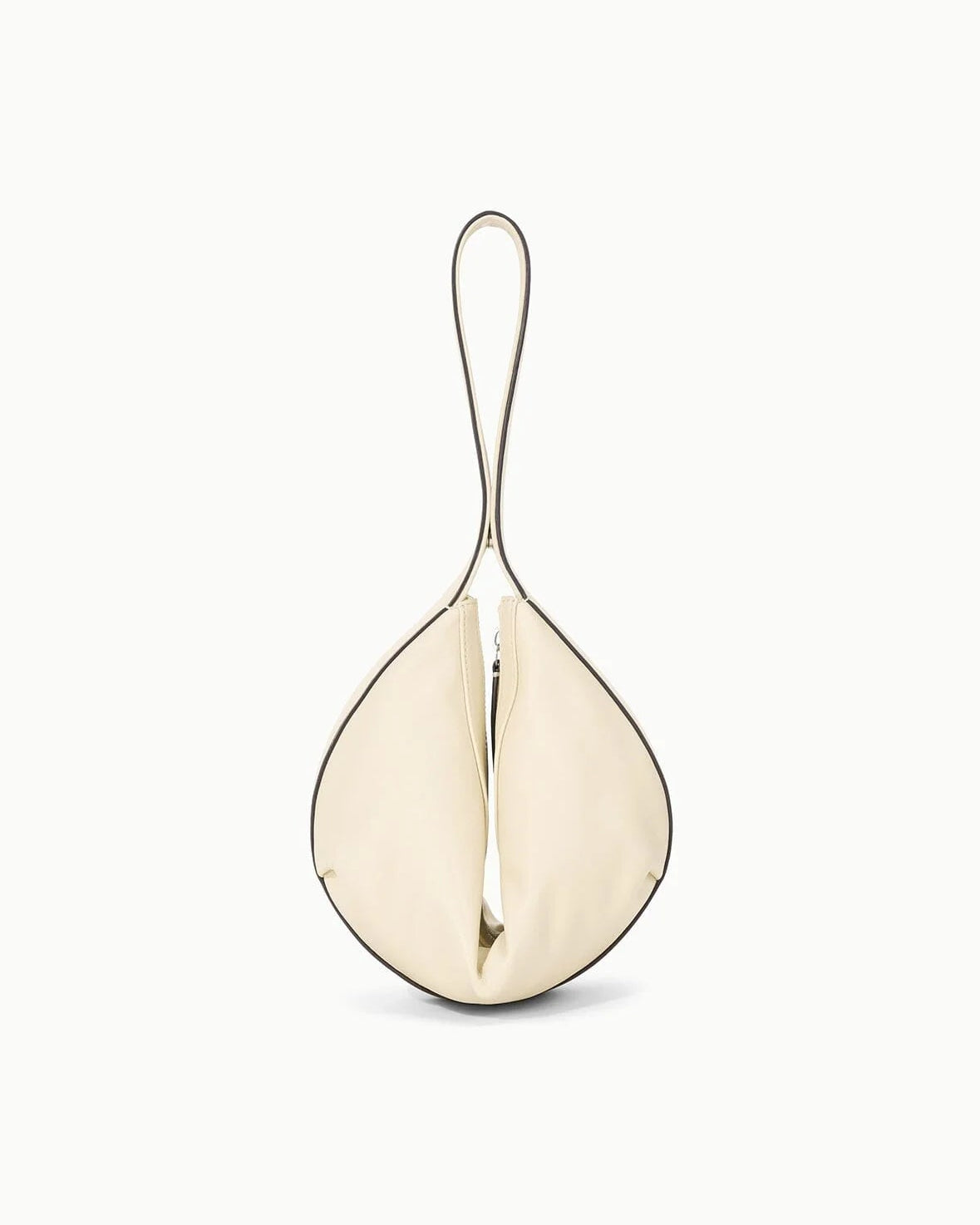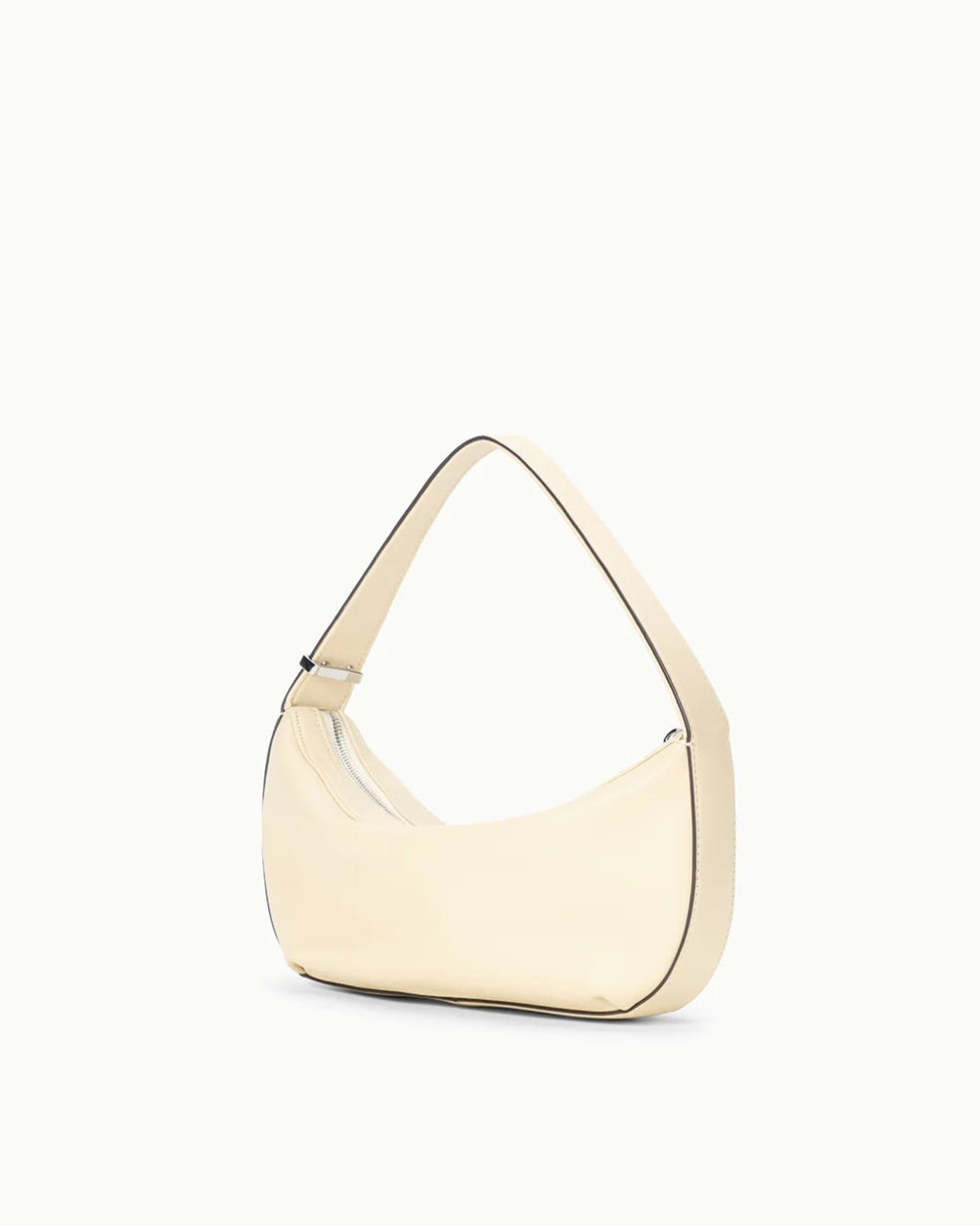 The Demy Shoulder Bag is a chic convertible bag that can be worn over the shoulder or hand held. It features signature hardware clasp on the strap to convert the shape to a handheld pouch. This style features a suede leather body, a top zipper, and signature hardware.