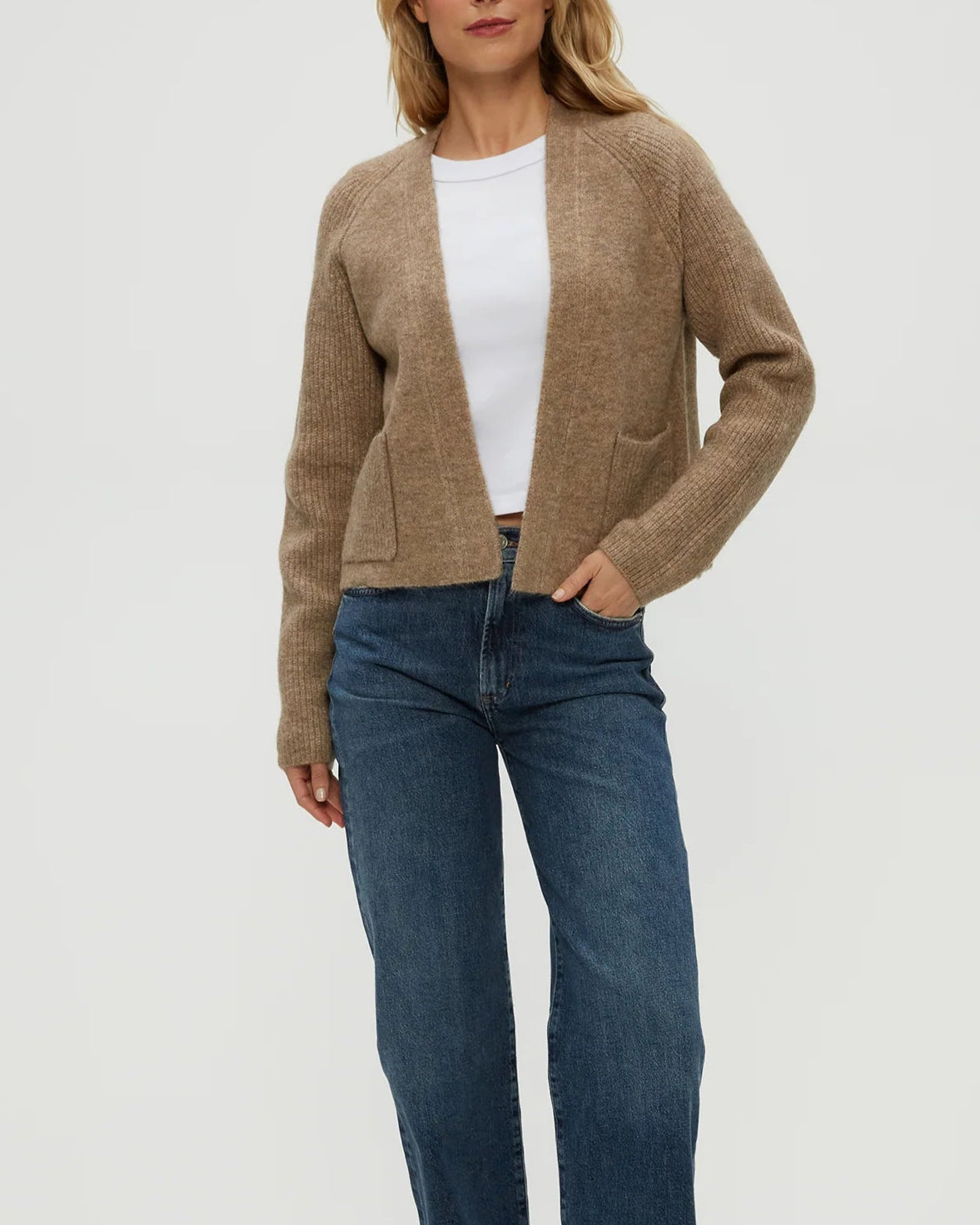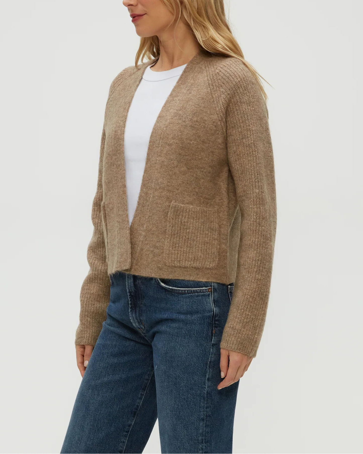 Warm up to a welcomed twist on the classic cardigan. Designed from our cozy knit fabric, this cardigan features an open front and hits at the waistband. With front patch pockets and a relaxed fit, this is an absolute for your chilly weather wardrobe.