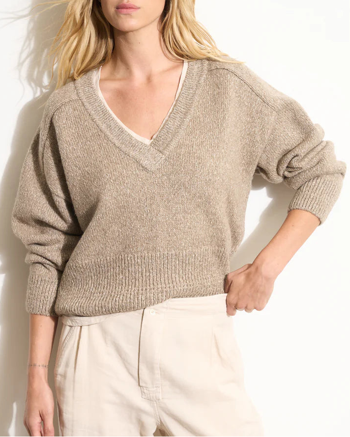 The Eden Deep V Neck Sweater is crafted from the same luxurious blend of baby alpaca and pima cotton, sourced and spun in Peru as its sister style, the Marfa. Baby alpaca is hypoallergenic and as soft as cashmere yet seven times warmer than wool, making a silky-feel sweater with cozy and plush insulation ready for crisp winter days and cool spring evenings.