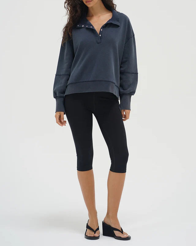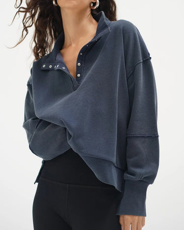 HALLIE SNAP COLLAR PULLOVER | Washed Navy
