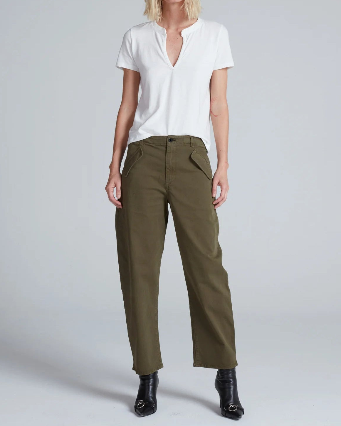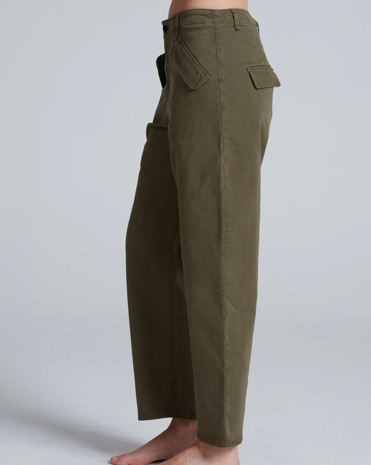 The Luda Cargo is a relaxed, utilitarian-inspired pant with a modern edge. Designed with a high rise and easy straight leg, it features clean front seams, subtle cargo details, and back flap pockets that add function without extra bulk. Cut in soft stretch twill, it's a versatile style that can be dressed up or down with ease.