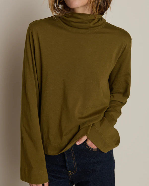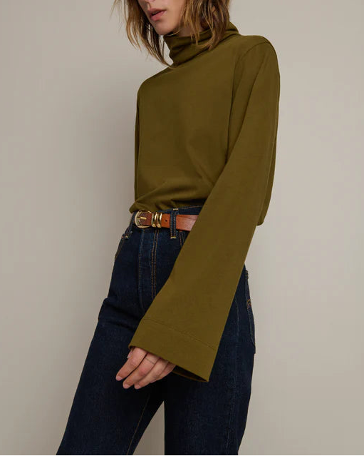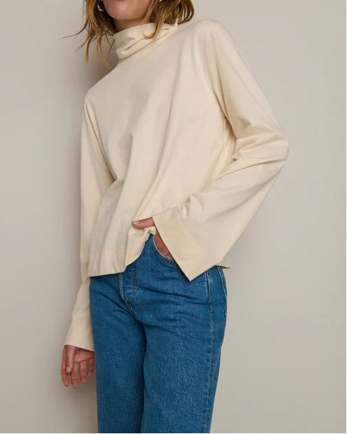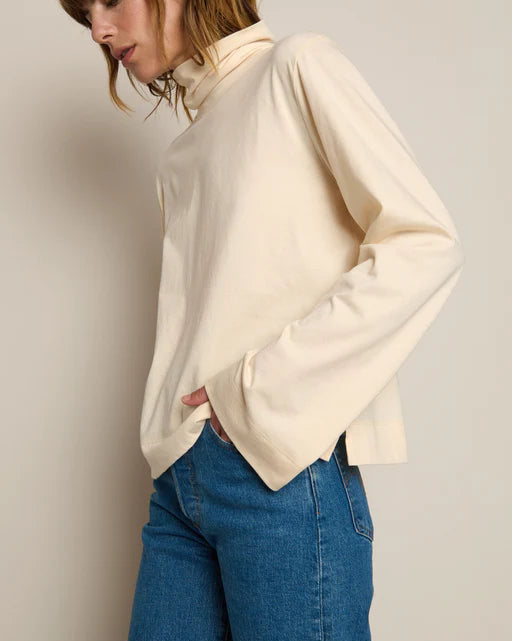 The Neo Turtleneck is a throwback with staying power—cut from 100% pima cotton with thoughtful tailoring techniques to fit and move just right. A relaxed mock neck, bell sleeves, and side slit do the work for you, on or off the clock.
