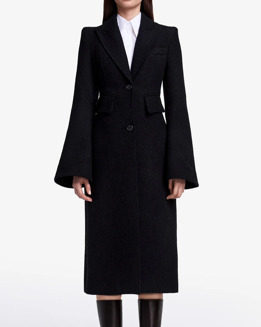 Pagoda Brando Trumpet Sleeve Coat | Black
