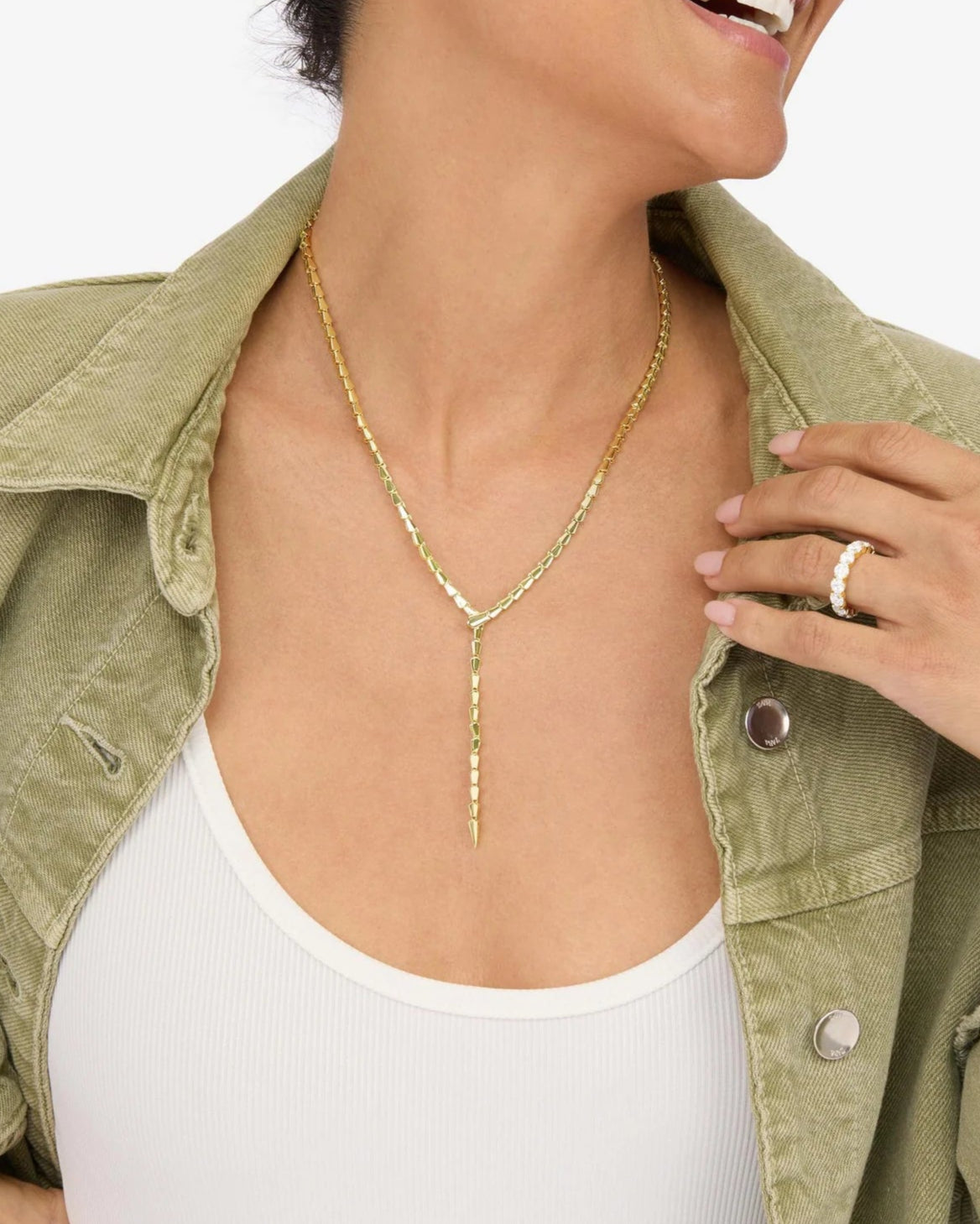 For the times you want to feel like your MOST badass self… With its snake-like links, the Serpent Lariat Necklace (or Y Necklace) looks perfect with a low cut top or layered over a t-shirt for an edgy everyday look.